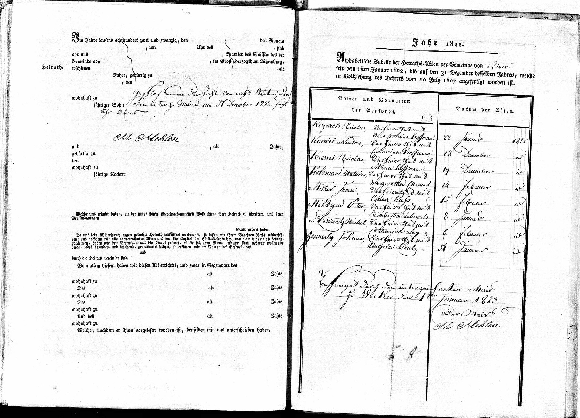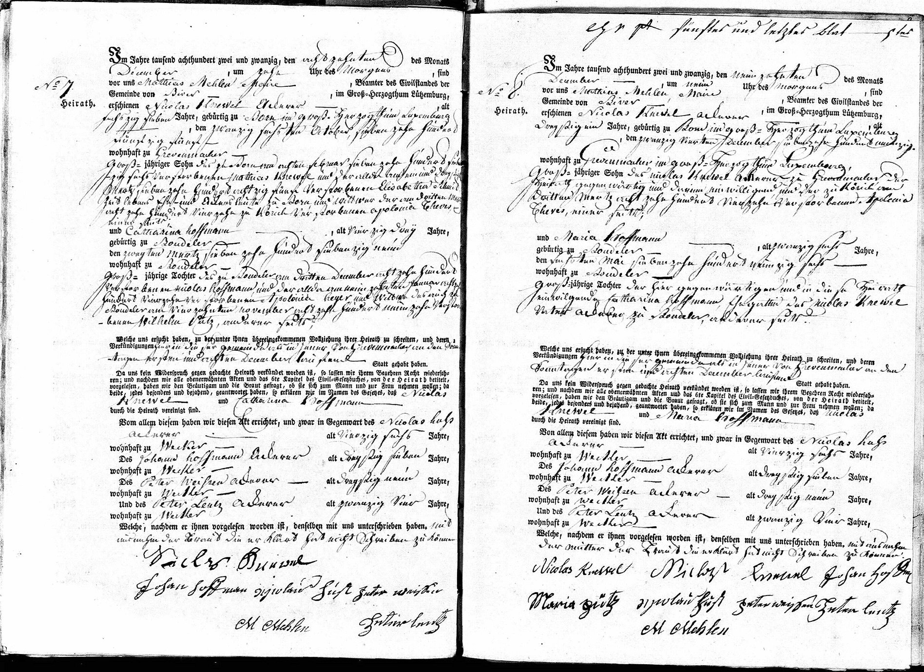 On 19 Dec 1822, Nicolaus and Maria were married in Boudler. What is of significance is that Nicolaus' father, Nicolaus (as well), married Maria's mother, Katharina, the day before, so Nicolaus Knewel is listed as the father of both children.