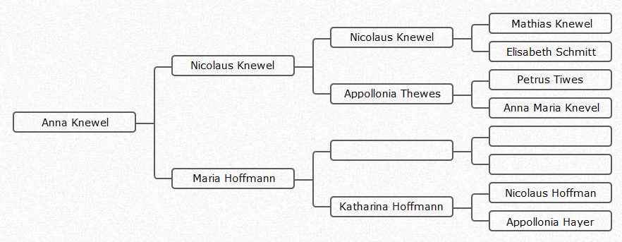 - Appollonia Tiwes (b. 25 Nov 1752, m. 3 Dec 1782 to Nicolaus Knevel)